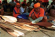 barques effilées longues de 25 m sont traditionnellement entreposées le