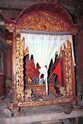 Le Dinh de Ha Hiêp est remarquable par ses magnifiques décorations de bois sculpté représentant des scènes de la vie quotidienne, de la nature ainsi que des animaux et des personnages mythiques. Le héros auquel ce dinh est dédié est Hoang Dao, un personnage qui servit auprès des deux soeurs Tru'ng. Le Dinh a perdu son plancher de bois. Il a été remplacé par un dallage de Ba't Trang. De nombreux objets de culte ont été préservés : sabres, parasols, lances... |